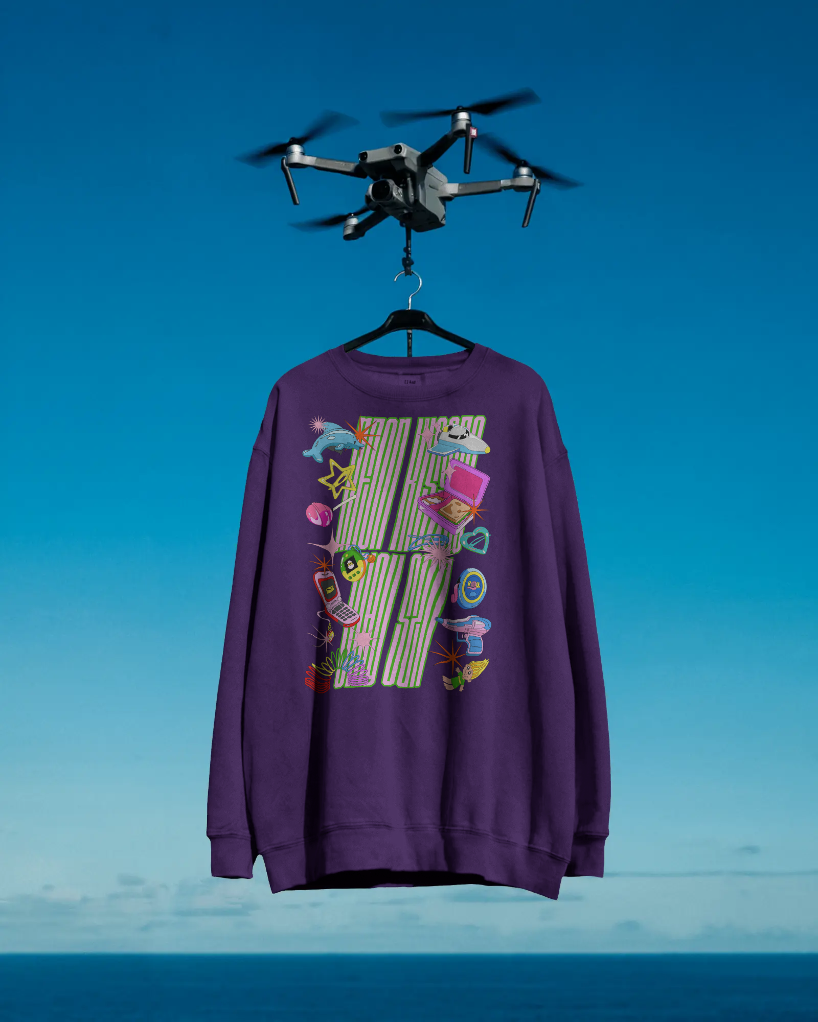 The Neon Kisses Slay Szn Crewneck is giving vacay vibes + throwback magic all in one iconic winter-ready fit. Featuring our signature “Neon Kisses Slay Szn” slogan across the chest in playful, retro-inspired print — surrounded by fun-loving icons like a dolphin, airplane, troll doll, heart, star, and Y2K cellphone — this crewneck is a walking moodboard of dreams, destinations, and style.